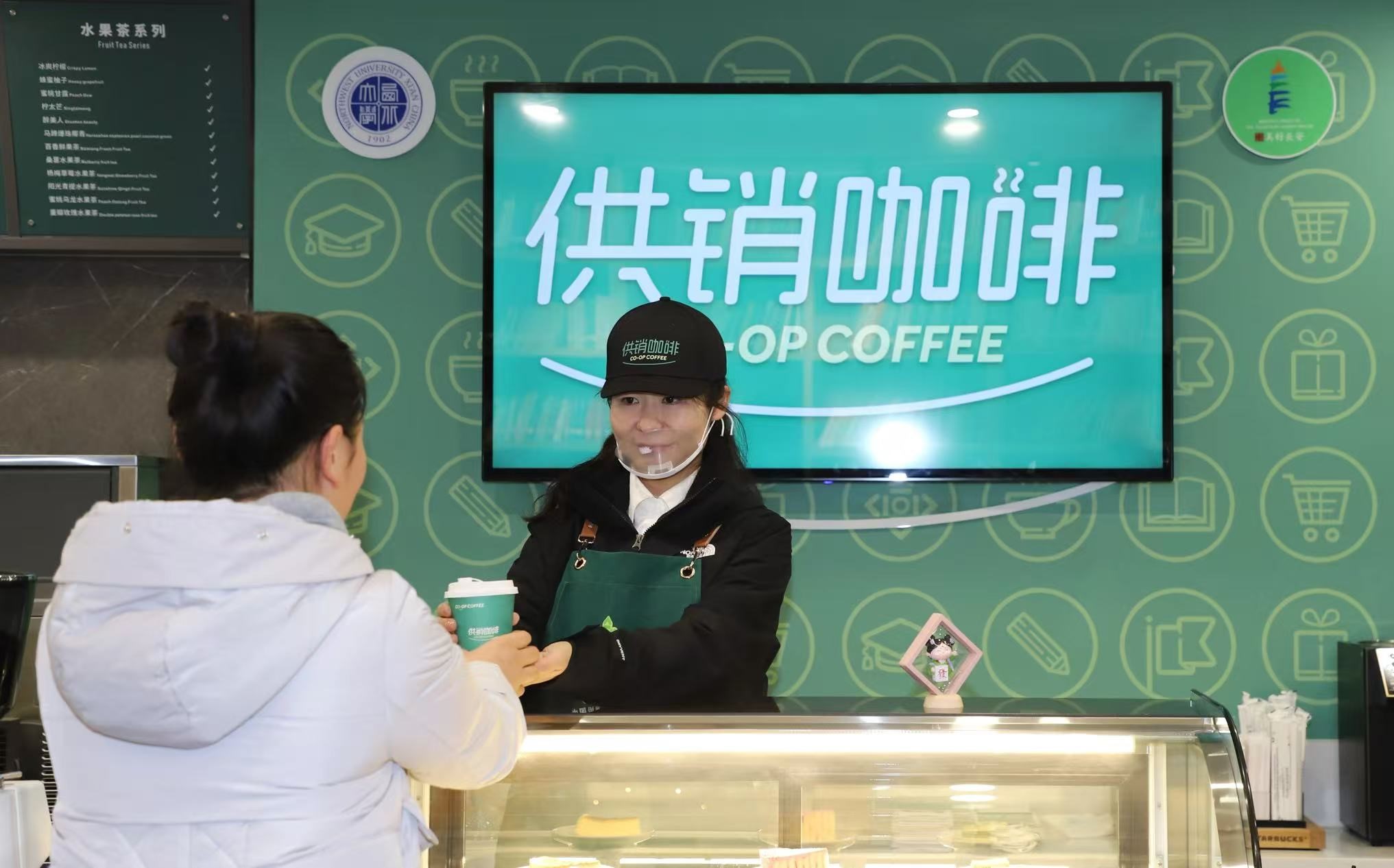 “听说供销社刚在图书馆外开了一家咖啡店,没想到味道不错,环境也优雅,我们舍友几个都说考试周期间的咖啡因不愁了。”正在购买拿铁咖啡的大二学生刘玉甜笑着说道。