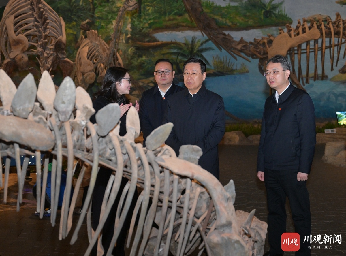 3月18日,省委书记、省人大常委会主任王晓晖到自贡恐龙博物馆调研,了解当地推动文旅融合产业高质量发展情况。