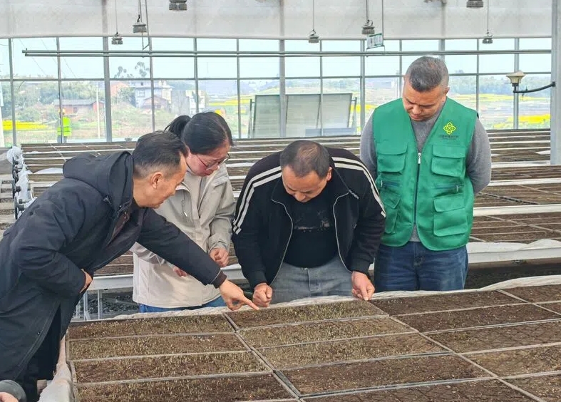 代寺镇草茂村供销社育秧中心依托中化MAP技术体系,建立“晒种—浸种—拌种—流水线播种—碟盘暗化—温室培育”全流程标准化作业模式,秧苗出芽率稳定达95%以上、移栽成活率达98%以上,为农户提供可复制、可推广的优质育苗解决方案,有效降低种植风险。搭建“科研机构+龙头企业+育秧中心”三位一体合作平台,与四川省现代种业发展集团、省农科院水稻高粱研究所、隆平高科等深度合作,重点开展抗病高产水稻品种选育及智能化育苗技术推广。成功引进“宜香优2115”“甬优4949”等优质品种,为区域农业提质增效注入科技动能。立足设施设备最大化利用,创新“一季育苗、多季经营”模式,在非农忙季节开展蔬菜、花卉等经济作物育苗,破解了传统育苗设施闲置难题,提升农业综合效益,实现资源利用与经济效益双提升。