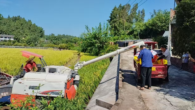 近日,荣县各乡镇陆续迎来水稻收割季,广袤的稻田里一片金黄,沉甸甸的稻穗压弯了稻秆,微风拂过,涌起层层金色稻浪,处处洋溢着丰收的喜悦。在这忙碌的秋收时节,荣县供销社充分发挥自身职能优势,积极投身到农业生产服务中,为水稻收割工作的顺利开展提供了坚实保障。