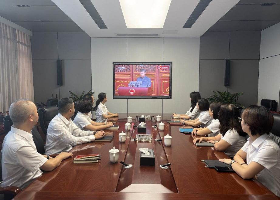 9月3日,纪念中国人民抗日战争暨世界反法西斯战争胜利80周年大会盛大举行,省老邻居公司党支部组织干部职工集中观看本次电视直播,共同感受气势恢宏、震撼人心的国家盛典,教育引导干部职工铭记历史、缅怀先烈、珍爱和平、开创未来,把爱国热情转化为推动企业高质量发展的奋进力量。