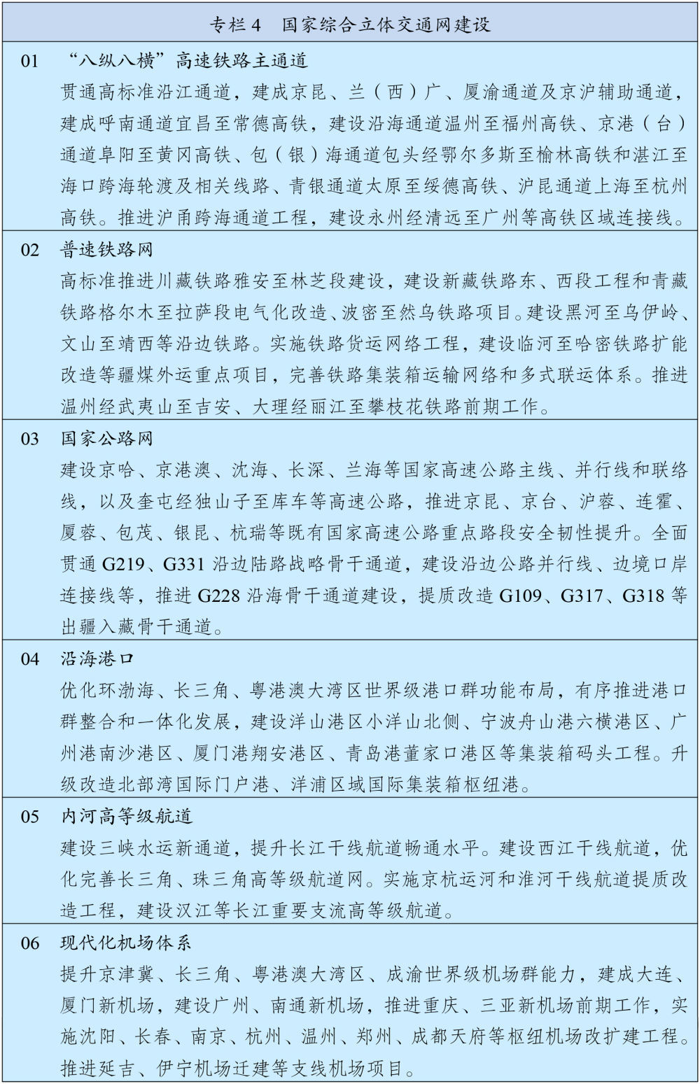 加强港澳与内地经贸、科技、人文等合作,完善便利港澳居民在内地发展和生活政策措施。有序推进与内地金融市场互联互通,深化与内地产学研创新协同。深化粤港澳合作,持续推动重点领域合作实现突破,促进港口、机场和轨道交通协同发展,建设广州至珠海(澳门)高铁,推进港深西部铁路前期工作。深化琴澳一体化发展,高质量建设前海、南沙、河套等重大合作平台。建设澳门国际机场横琴前置货站,推进澳琴国际教育(大学)城建设,支持澳门高校在横琴延伸办学。健全香港、澳门在国家对外开放中更好发挥作用机制,支持港澳深度参与高质量共建“一带一路”,发挥专业服务优势协助企业“走出去”。发挥港澳在中西文明交流互鉴中的重要窗口作用。