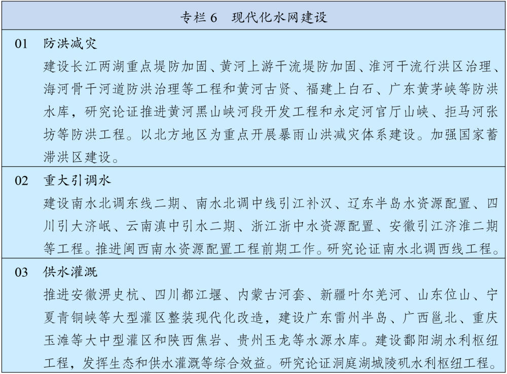 围绕实施国家发展规划,健全政策协调和工作协同机制。将国家发展规划作为宏观政策取向一致性评估的重要依据,确保各类政策发力方向符合国家发展规划要求。强化中期财政规划和年度预算安排对规划实施的财力保障,中央财政资金优先投向规划确定的重大战略任务、重大政策举措和重大工程项目。金融政策要积极支持规划确定的重点发展领域。坚持项目跟着规划走、资金和要素跟着项目走、监管跟着项目和资金走,加快规划确定的重大工程项目审批核准,优先保障规划选址、用地用海和资金需求,单体重大工程项目用地等要素需求由国家统一保障。加强对重大工程项目的伴随式穿透式监管和全过程全周期安全管理。