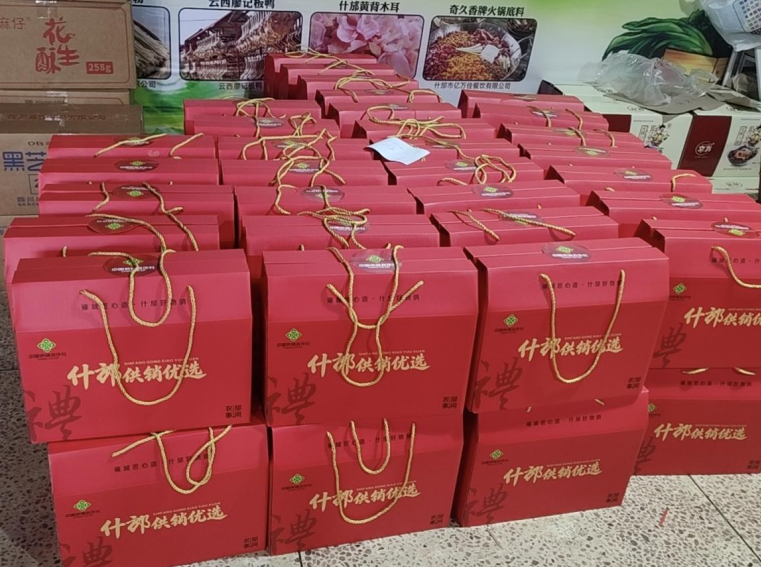创新社企模式,搭建产销平台。什邡市供销社聚焦打通农产品上行“最后一公里”,携手什邡市食品饮料产业商会,创新“供销社+产业商会+企业”合作模式,联合商会22家成员企业共建“什邡好物名品馆”。该馆集产品展销、礼盒团购、直播带货于一体,依托线上线下融合发力,全面拓宽本地名优产品销售渠道。2026年2月供销特色礼包试推广以来,春节期间市场反响热烈,累计销售礼盒2000余套,实现产销高效对接、多方共赢。