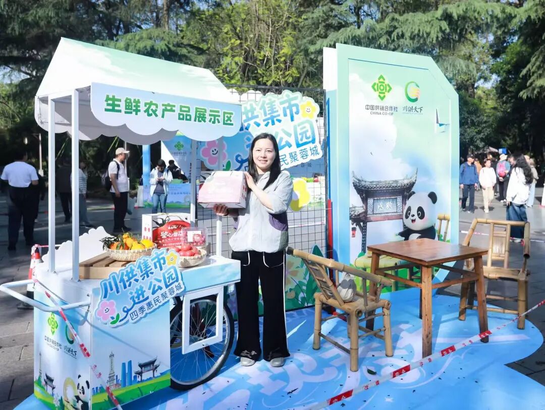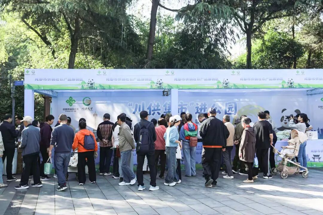 4月17日,由四川省供销社、成都市供销社、成都市公园城市建设管理局指导、四川省供销投资集团有限公司主办的“川供集市进公园·四季惠民聚蓉城第一站”活动在成都市人民公园正式启幕。此次活动将持续至4月19日,共有16家企业、168种四川农特产品亮相,设置“川供天下”供销优选展销区、生鲜农产品直供展销区、地方供销社农产品展销区、39个欠发达县域农产品展销区等展区。 活动现场人头攒动、购销两旺,通江银耳、会理蓝莓、马边腊肉香肠、川茶、川酒、粮油干货等数百种“川字号”好物集中亮相。试吃品鉴、产地直供、惠民让利等活动吸引市民踊跃参与,询价声、推介声、欢笑声此起彼伏,浓浓的烟火气息成为春日蓉城一抹亮眼的民生底色。