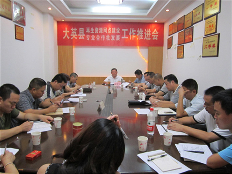 2012年8月31日,经大英县人民政府分管领导同意,大英县供销社组织召开了全县再生资源网点建设和专业合作社发展工作推进会。全县11个乡镇分管乡镇长、县农发办领导、县供销社班子成员、中层干部及部分成员企业和合作社负责人参加了会议。