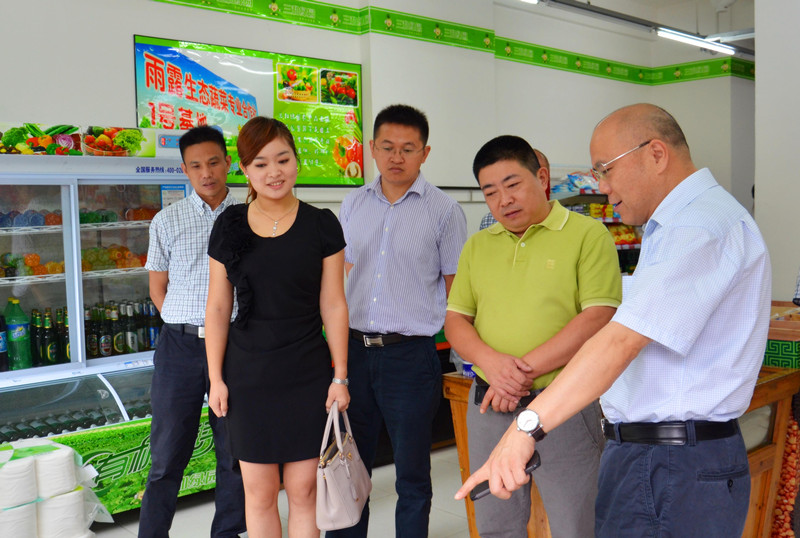 赵一贵一行先后实地参观考察了“三和绿园恒大城精品店”、“三和绿园瑞泉馨城直营店”等“产销对接”项目。