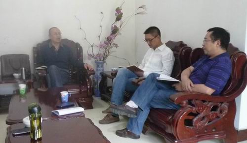 图为德阳市供销社党委书记、主任罗跃奎(左一),市供销社副主任吴善明(右一)正在听取罗江县社负责人工作汇报