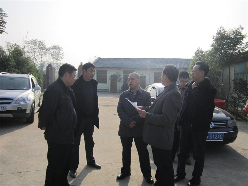遂宁市农办副主任赵全江(左三)、市农办产业科长张启文(右二)在大英县供销社副主任吴会权(左一)陪同下视察喜帮生猪专业合作社。