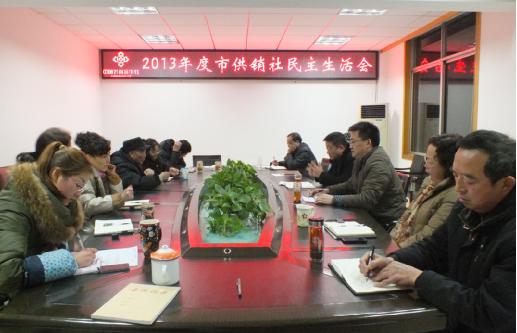 会上,市供销社党委书记陈吉学代表市供销社党委班子通报了2013年市供销社主要工作情况和2014年工作打算,并带头做了自我剖析发言,各位党委委员就一年来贯彻中央八项规定、省委省政府十项规定精神,转变作风方面的情况;在“四风”方以及德能勤绩廉等方面进行了深入剖析。随后班子成员逐一进行了自我批评,热烈展开相互批评帮助。退休老同志代表以及市供销社各科室负责人列席了会议,对班子和班子成员提出了意见建议。会上大家对问题不回避、不遮掩,尖锐真诚,触及本质,坦诚相待,真正达到了帮助提高的目的。针对班子存在的问题,大家踊跃发言,主动出谋划策,议定整改措施,充分体现了班子成员团结和谐、谋事干事、积极向上的氛围。