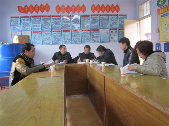 2014年1月17日,大英县供销社党组成员、副主任吴会权(左三)率县供销社机关支部书记、农民专业合作经济组织服务中心副主任何俊阳(右一)深入到县供销社联系村智水乡斩龙垭村开展调研工作。