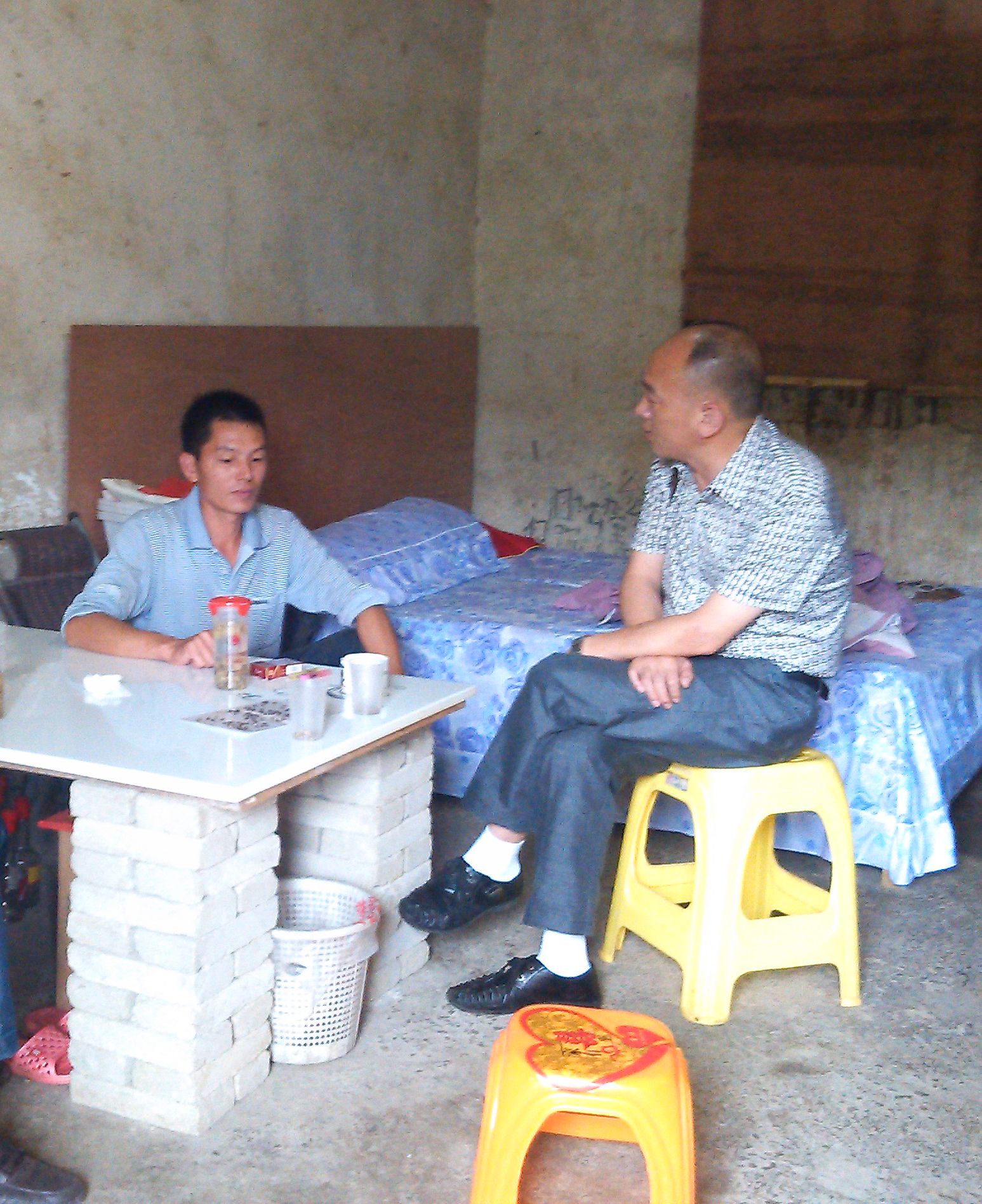 ↑邻水县供销社党委书记、主任谢标学﹙左一﹚看望困难职工