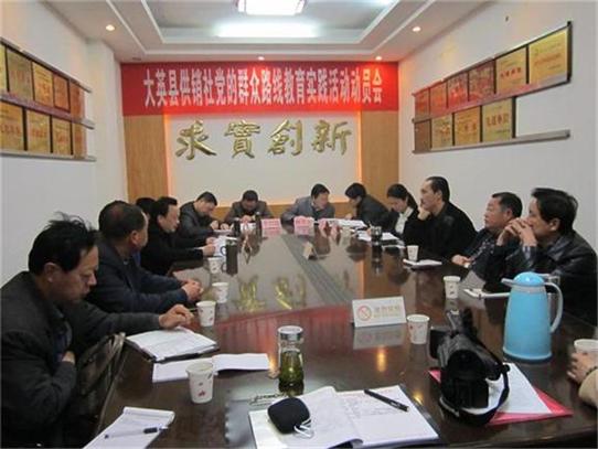 2014年3月21日上午,大英县供销社召开党的群众路线教育实践活动动员会。会议由党组书记、主任、县供销社党的群众路线教育实践活动领导小组组长李兴建主持。县供销社全体职工、部份服务对象参加了会议。县委第七督导组副组长、县政协城经委主任杨先平,督导组成员、县农业局党组副书记、副局长王东旭、县老干部活动中心干部刘春到会指导。
