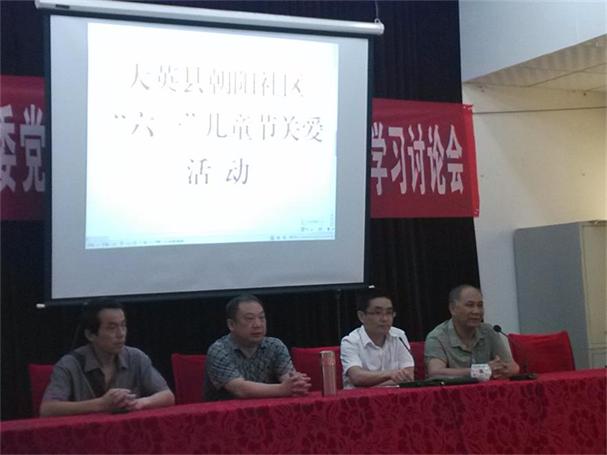 根据大英县朝阳街社区党支部书记奉楷(右二)、社区主任漆焰(左二)邀请,县供销社机关党支部书记何俊阳(左一)代表县供销社参加了朝阳街社区举行的大英县朝阳街社区“六一”儿童节关爱活动。