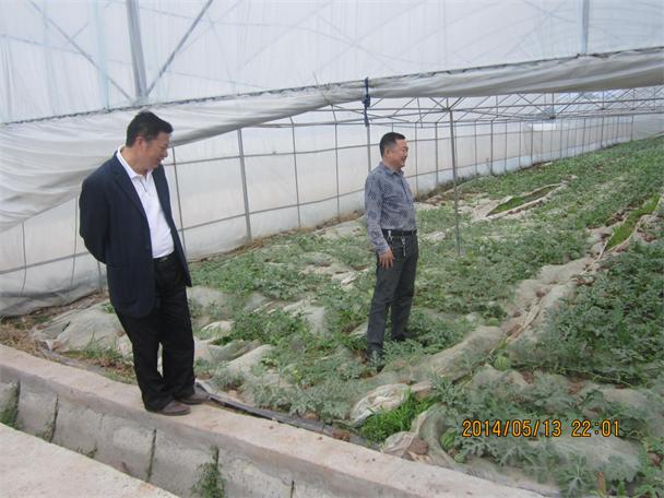 近日,大英县供销社党组书记、主任李兴建(右)率党组成员、副主任吴会权(左),相关股室负责人深入到大英县雪秀蔬菜专业合作社检查督导中华供销总社2013年四川省遂宁市大英县300亩大棚蔬菜种植改建项目建设情况。