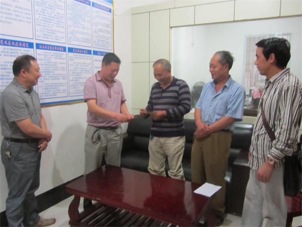 6月24日上午,大英县供销社党组成员、副主任吴会权(左二)在社区主任漆焰(左一)引领下,冒着沥沥小雨,率县供销社机关支部书记何俊阳(右一)到联系的蓬莱镇朝阳街社区对3名老党员进行节日慰问,每人送去慰问金200.00元。