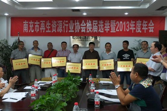 6月23日,南充市再生资源行业协会第三届一次会议暨2013年度年会在南充市供销合作社会议室圆满召开,参加会议的人员有:市供销社党委书记、主任蒲国,市供销社副主任王道金、张颖淑,县(市、区)供销社分管副主任、业务科长,再生资源回收企业经理。川北再生资源市场经理崔川生主持会议。