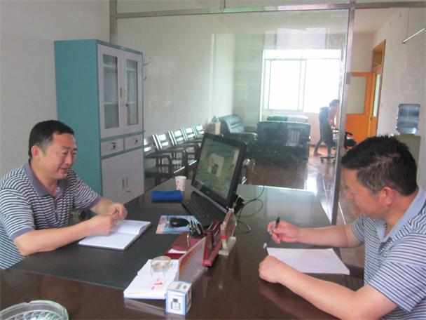 7月2日,根据党的群众路线活动教育活动工作安排,大英县供销社党组书记、主任李兴建(左)分别与副主任吴会权(右)、陈国安,纪检组长贺昌兵开展交心谈心活动。