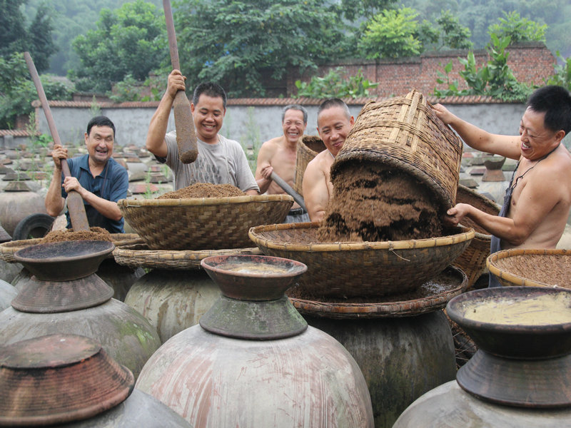 泸州护国陈醋股份有限公司是泸州市纳溪区供销社所属企业,其生产的“护国陈醋”,具有逾百年的历史,深受广大消费者的喜爱,被誉为“川南第一醋”。“护国陈醋”先后荣获“酒城消费者最喜爱产品”、“泸州知名商标”、“泸州市优质产品”、“泸州市首批优秀旅游商品”、“四川省旅游商品定点生产单位”、“四川省优质产品”、“四川老字号”、“首批四川省非物质文化遗产”、“中国西部农业博览会名优农产品”等称号。还先后获得“全国质量信得过产品”、“中华老字号”、“全国食品行业名牌产品”、“全国非物质文化遗产”等荣誉。该公司董事长欧俊模曾荣获“和谐中国2007年百名优秀企业家”称号。该公司作为全国非物质文化遗产单位,为了传承手工酿造这一独特技艺,采用纯天然晾晒发酵陈醋的方式,生产出既优质,又得到市场青睐的产品。图为7月14日一大早该公司员工正在抓紧夏季的睛好天气在生产现场进行装料。(朱育军)
