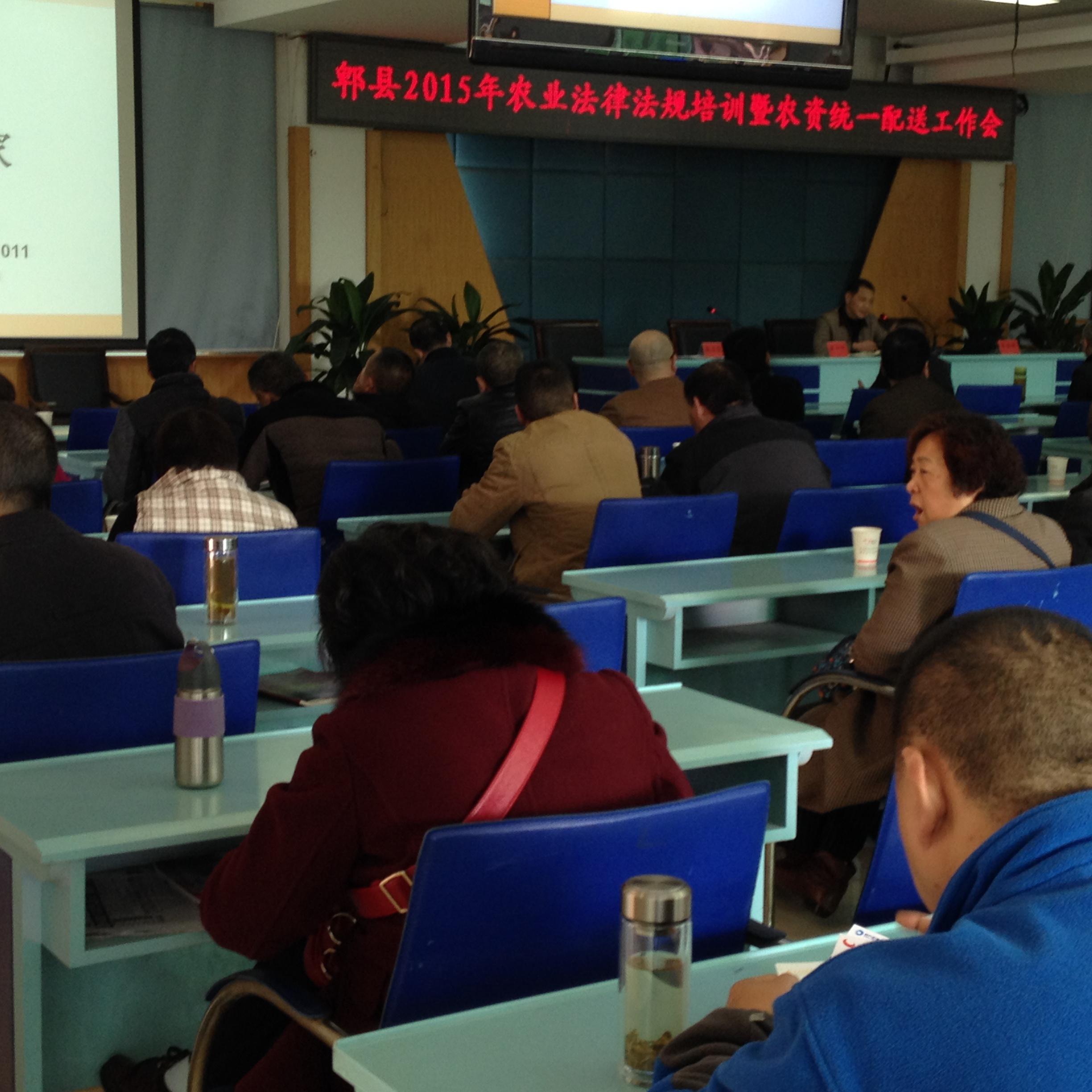 为进一步增强郫县农资经营人员的法律意识,规范农资市场经营秩序,净化农资市场环境,保证农产品质量和农业生产安全,3月13日上午,由郫县供销联社和县农村发展局、郫县农资科技协会共同组织全县150余户农资经营户及农资放心店管理人员在县委党校举办了为期1天的农业法律法规培训暨农资统一配送工作会议。