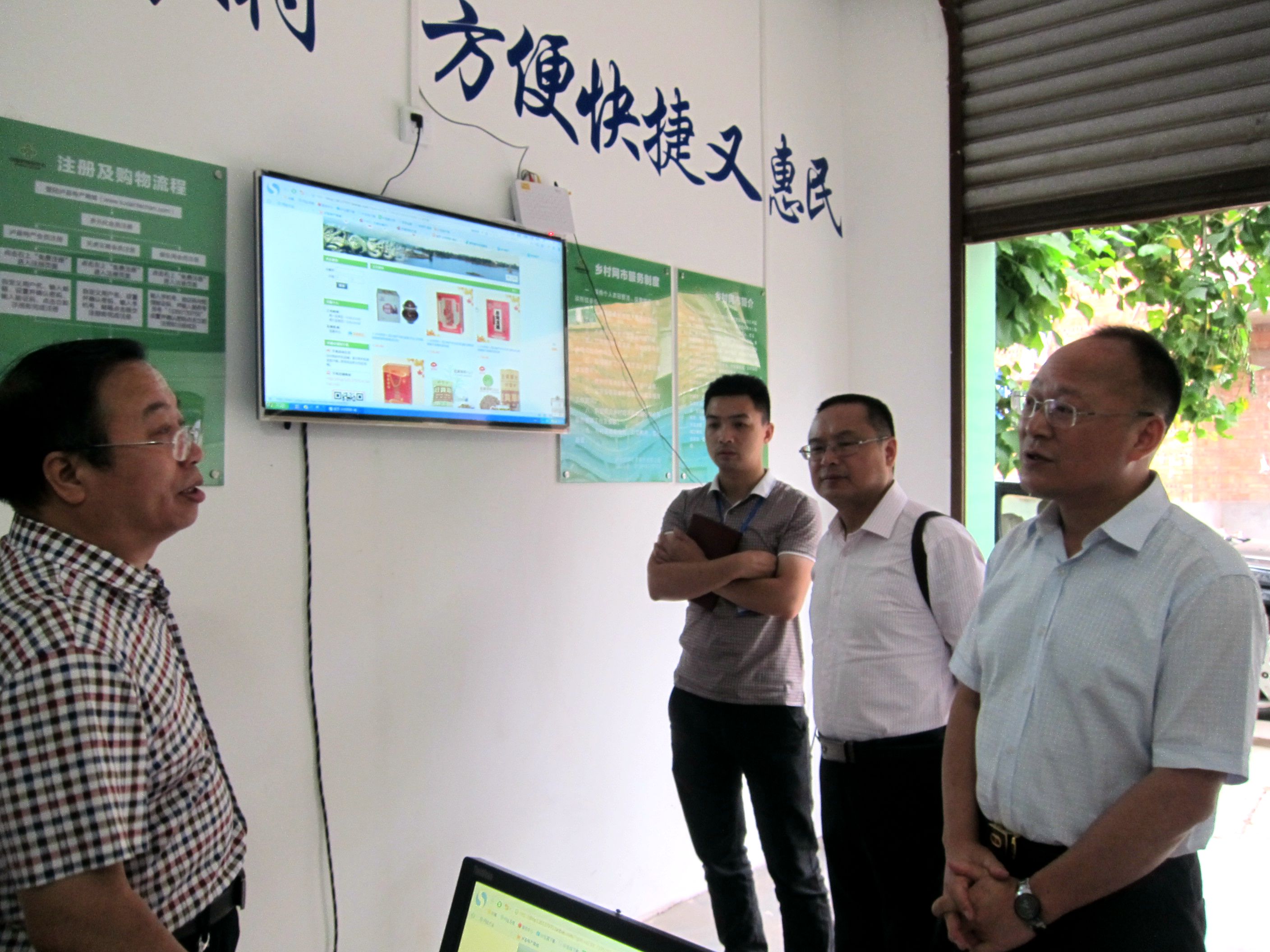 5月12日,泸州市工商局副局长徐俭到泸县调研电子商务建设工作。泸县工商局副局长曾俊、泸县供销社副主任洪代富陪同调研。