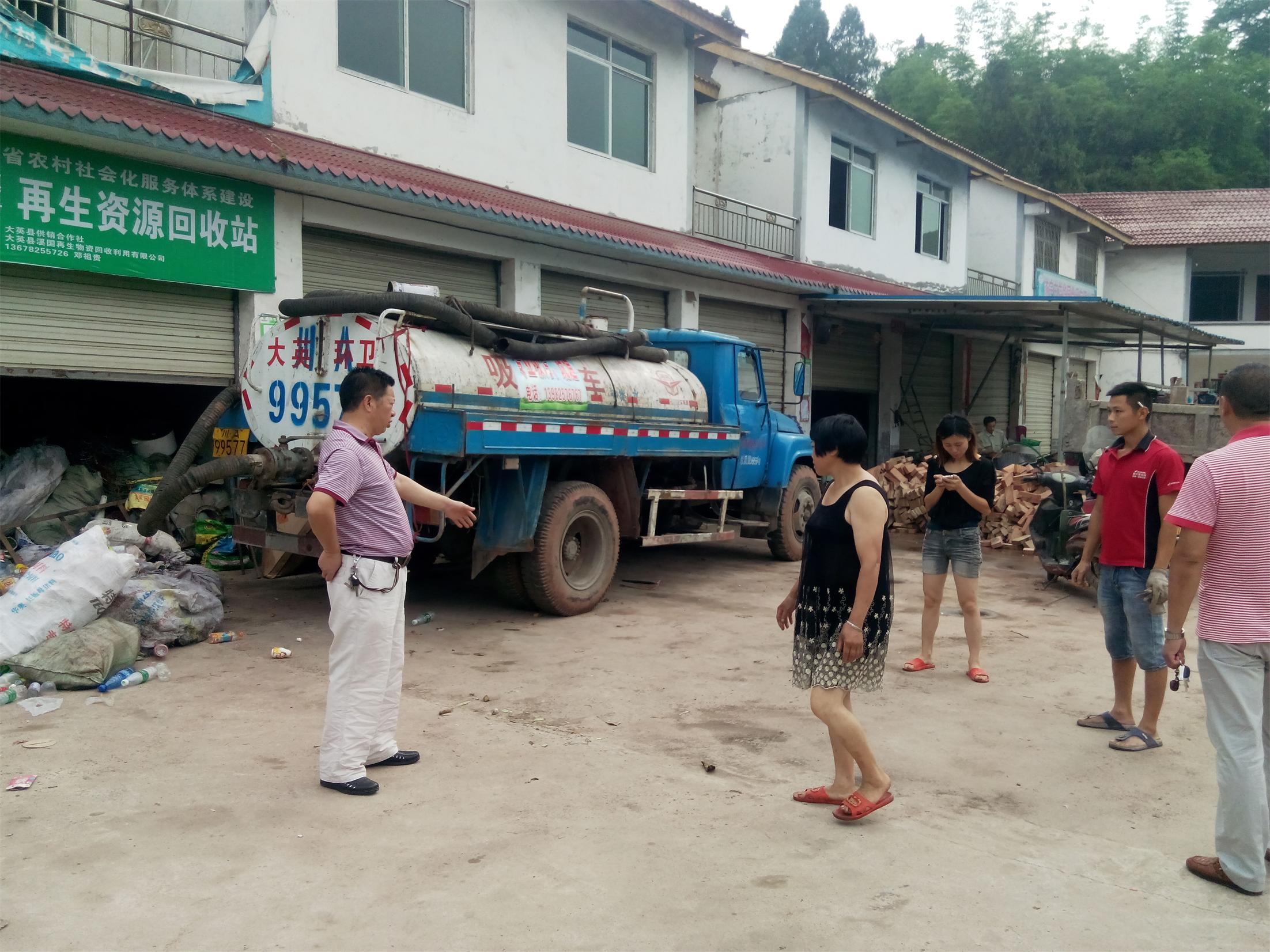 为确保大英县迎接全国农村垃圾治理检查验收圆满完成,2015年6月8日,大英县供销社党组成员、副主任吴会权(左一)率队对全县再生资源废旧物资收购网点再次进行全面督查。