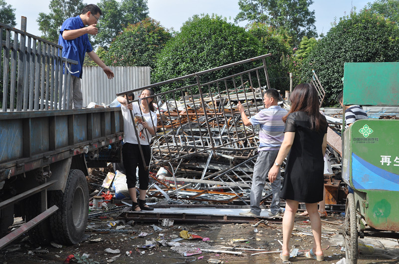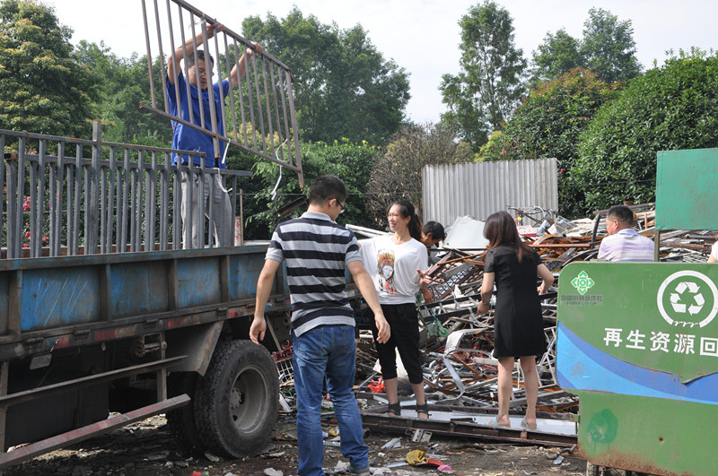 7月15日,成都市温江区供销联社党委结合纪念建党94周年暨“践行三严三实.服务发展走进基层”主题活动,组织党员志愿者、入党积极分子、老党员等成立“党员义工服务队”,来到温江区供销社温郫大道一段再生资源回收站,帮助一位大学生创业者所经营的回收网点进行再生资源分类和堆码工作。