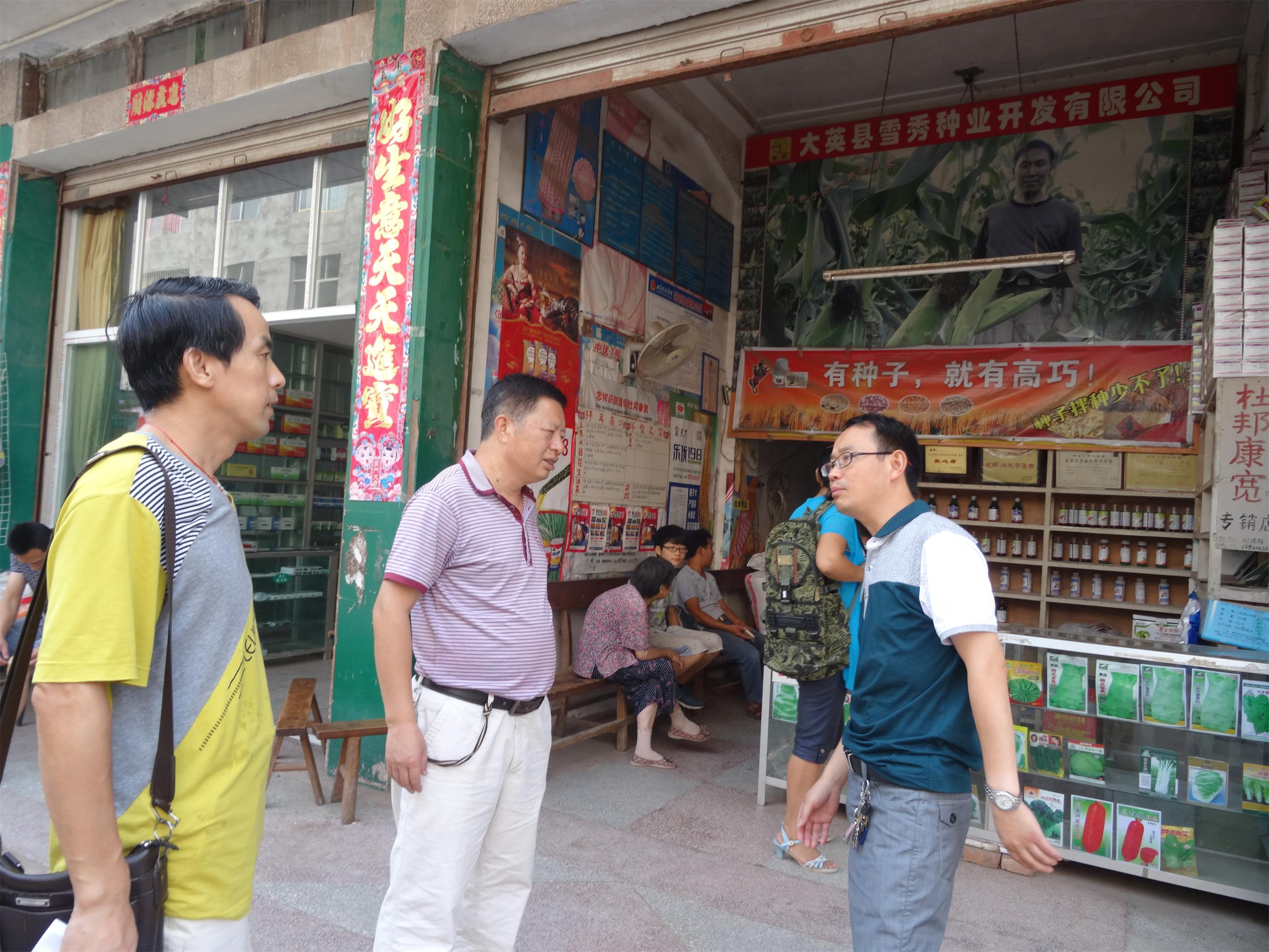 8月31日,大英县供销社党组成员、副主任吴会权(中)率县供销社股室负责人一行3人,在天保供销社主任何俊阳(左)陪同下,深入到各销售网点检查指导业务工作。