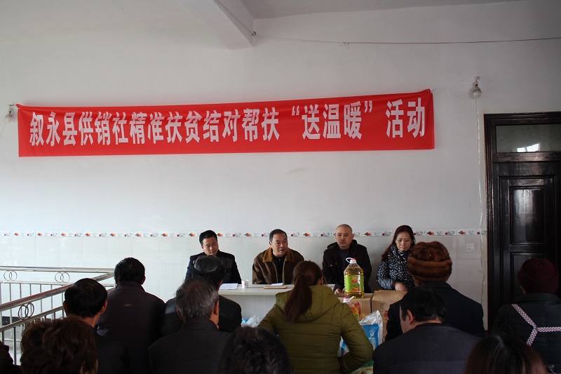 叙永县供销社为深入推进精准扶贫工作,于1月11日深入枧槽苗族乡双河村开展精准扶贫结对帮扶“送温暖”活动。一是为11户困难群众户和部分贫困党员户送去了一袋大米、两桶食用油及两百元慰问金,爱心人士饶世文也向每户送去两袋食用盐,给予困难群众一些生活上的帮助;二是县供销社主任何正清向大家进一步宣传了精准扶贫的政策,号召大家要有自食其力的信心和决心,通过发展农业产业脱贫致富奔小康;三是县供销社下派双河村第一支部书记徐明霞传达了市、县有关精准扶贫工作的会议精神,虽然双河村今年整村脱贫,但并不代表精准扶贫工作的结束,县供销社还要竭尽全力,继续巩固扶贫工作成果,将重点从产业及就业上开展帮扶工作,做到帮一个富一个;四是开展走访慰问,分别组成三个小组深入贫困户家中进行走访,了解家庭的生产生活状况,县社的帮扶工作开展情况,为下一步扶贫工作打好基础。通过此次活动的开展,进一步拉近了供销系统党员干部与群众之间的距离,对助推我县精准扶贫工作起到了积极的作用。