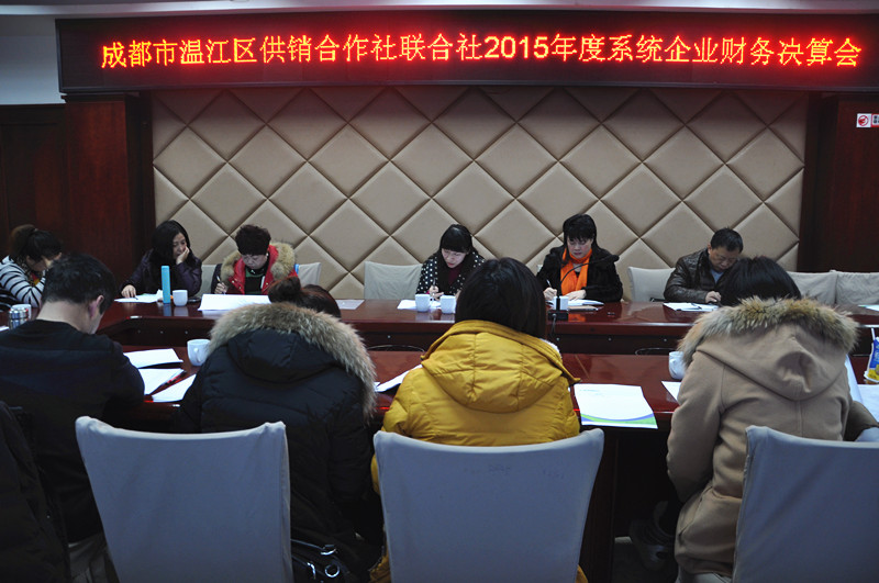 1月20日,成都市温江区供销联社召开全系统企业2015年度财务决算会,各直属公司、中心社会计及出纳参加会议,联社党组成员、副主任蒋慧出席会议并讲话,会议由联社财会审计科科长吴梅主持。