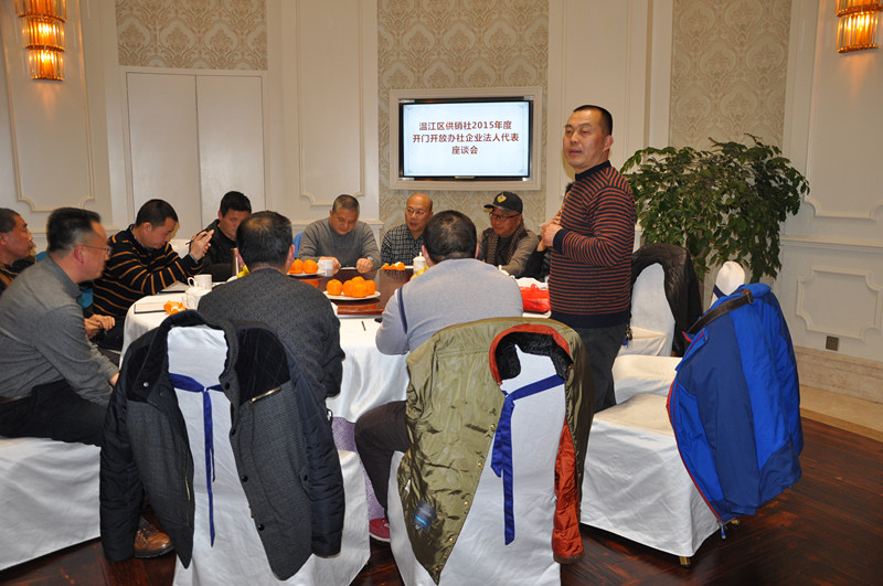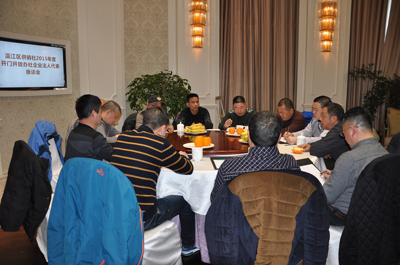为扩大供销合作社经营规模,提高经济效益,搭建更多的为农服务综合平台,更好地服务三农,1月21日,成都市温江区供销联社召开2015年度开门开放办社企业法人代表、会计报表工作人员年终座谈会,温江区红牛实业、凯瑞达农化、顺通食品、蓝新科技、等7家企业法人代表、会计报表工作人员参会。
