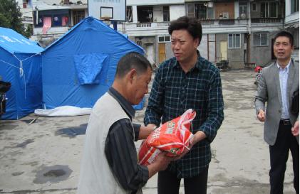 王小刚副主任为灾民送去大米、食用油、方便面等生活必需品