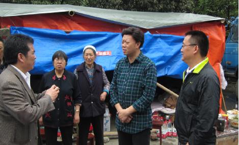 4月24日,省供销社副主任、抗震救灾工作领导小组副组长王小刚、安全储运处处长任建平,综合业务处副调研员刘文德和四川省老邻居商贸连锁有限责任公司副总经理杨中能一行四人在市供销社党委书记、陈吉学陪同下奔赴芦山地震灾区第一线指导抗震救灾工作。